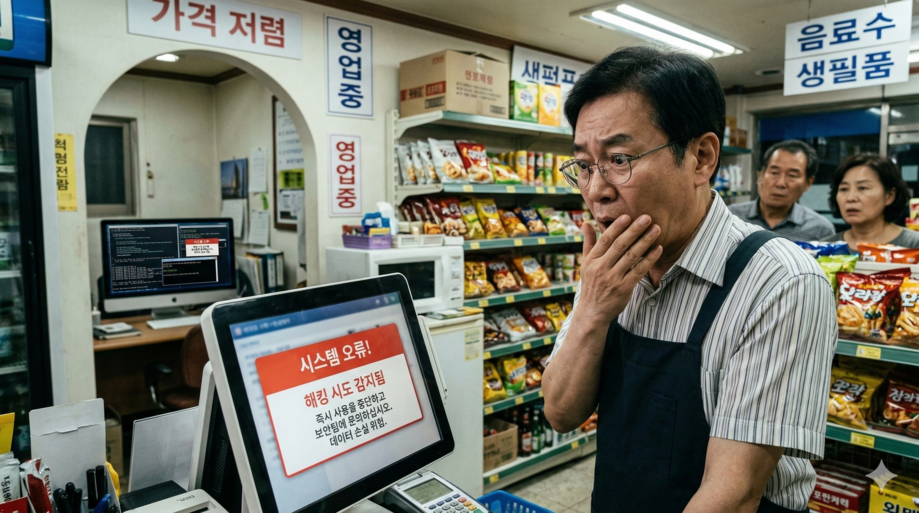 소상공인을 노리는 주요 사이버 위협은 세 가지다. 첫째, POS(판매시점정보관리) 단말기 해킹이다. 해커가 POS 시스템에 악성코드를 심어 고객의 카드 정보를 탈취한다. 2024년에만 POS 해킹 피해 소상공인이 2,300곳에 달했다.