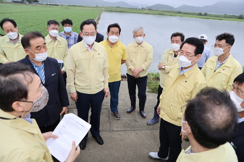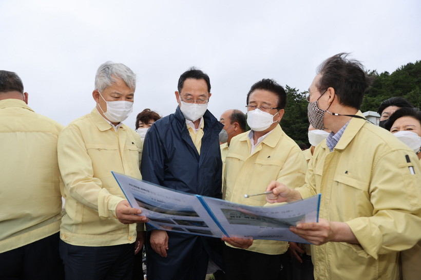 이어 명 군수는 현산면 백포 방조제를 찾아 김영록지사와 배수현황을 점검하는 한편 제방 200m 가량이 유실된 북평면 동해천을 찾아 응급복구 상황을 점검하고 주민들의 의견을 청취했다.